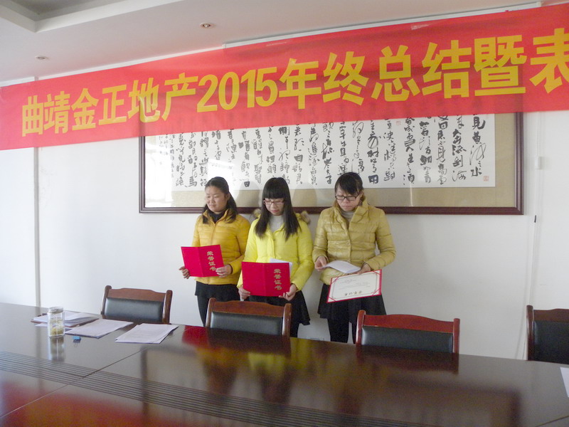 2016129,曲靖金正地產(chǎn)2015年終總結暨表彰大會在公司會議室順利召開。大會全面總結了曲靖金正集團在2015全年的各方面工作情況,對做得不足的方面也做了總結分析,同時明確了集團下一年度的工作方向和重點。針對各部門先進員工進行了分享和表彰,同時對公司優(yōu)秀個人工作總結進行了分享。