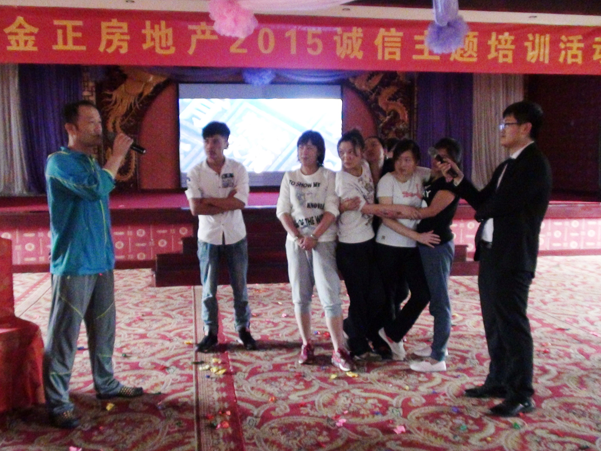 下午,在激烈的氣球保衛(wèi)戰(zhàn)游戲中,通過主題成語接龍和贊美別人相結(jié)合的游戲方式,檢驗了員工主題知識的儲備和知識素養(yǎng),同時使所有人學會了用心去發(fā)現(xiàn)別人的長處,做一個懂得欣賞他人的人。在地雷陣趣味游戲,讓大家明白了遵守活動規(guī)則并信任隊員是取得勝利的重要因素,也是“勇于擔當、信守承諾”的口號深入人心。趣味性最強的陣地保衛(wèi)戰(zhàn)游戲,各種各樣的比劃猜謎方式贏得了滿堂喝彩。